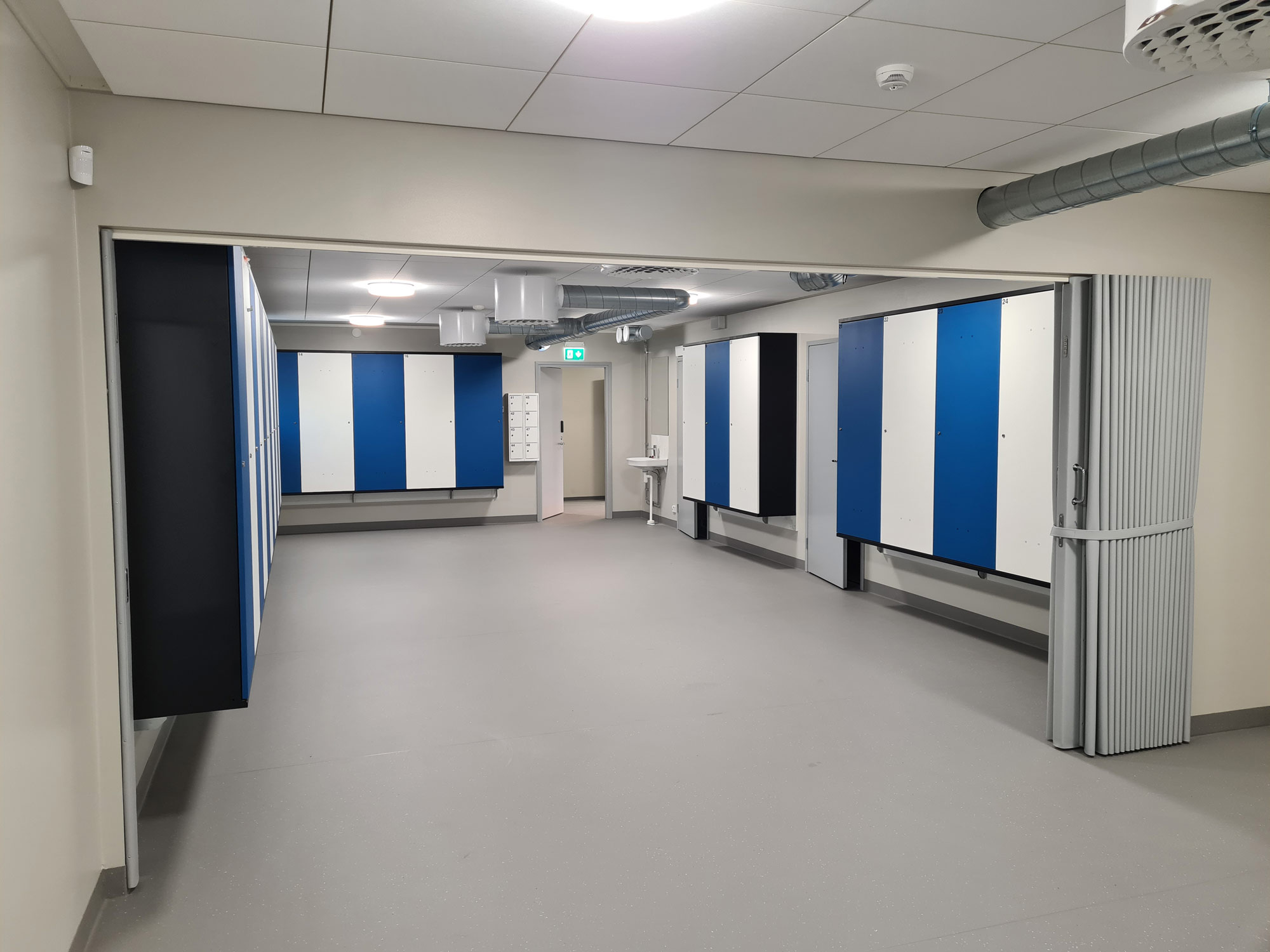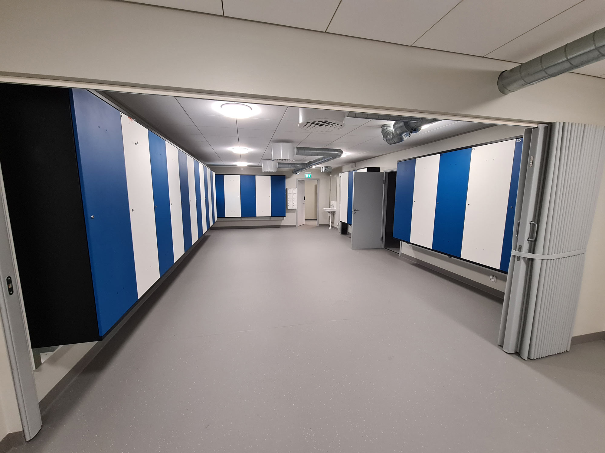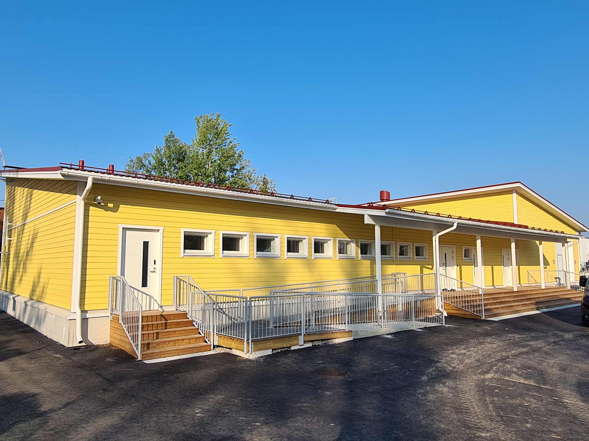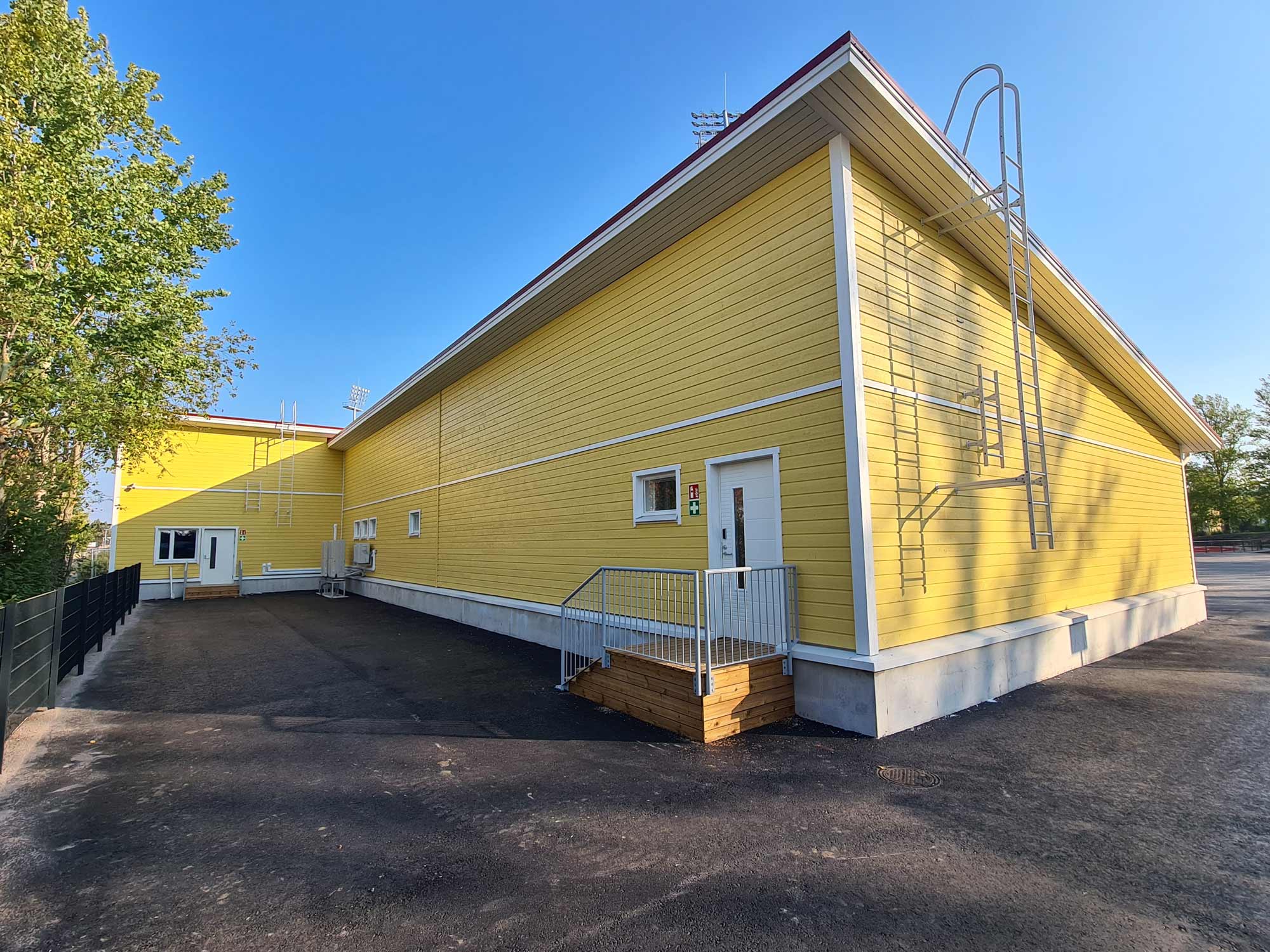 Järvenpään keskustan liikuntapuiston huolto- ja pukuhuonerakennuksen sisävalmistusvaiheen rakennustyöt ja ulkopuolinen pintamaalaus 2024.